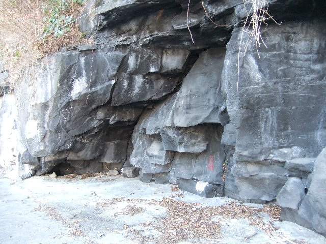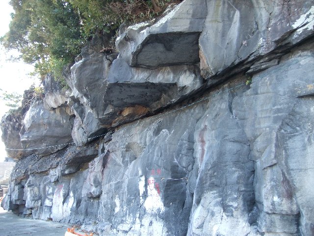 川奈・姥子神社の近くの溶岩の中には岩脈が見られます。