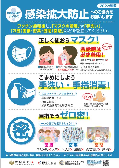 ・マスクを着けていない時は、出来るだけ大声で話さないようにして下さい