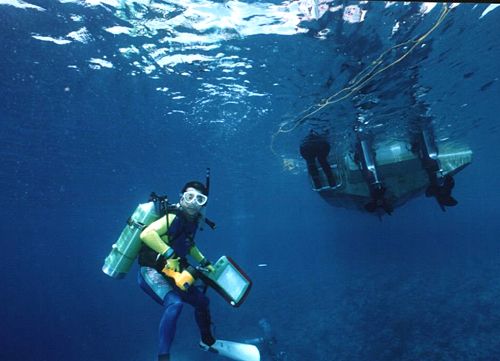 1990年代、半循環式潜水機「フィーノ」の体験ツアーを開催したときのワンショット。