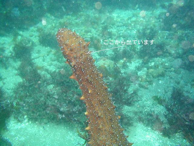 ・今週は北川の紹介 2003年3月21日 ・天気 晴れ ![]() ・気温 12℃ ・水温 15℃ ・波高 0.5m ・風 北東 ・透視度 10m ・コメント 久々の北川のボートはやっぱり面白かった!! 今日の驚きは、ナマコの放精放卵(?)を見られたことかな。写真の上の方からにょろにょろと 出ているのがわかりますか??ナマコが目一杯立ち上がって頑張っていました。(笑) ちょっと遠かったのですが、少人数ということもあって、クダゴンベも見られました。 エントリーするとキビナゴの大群に囲まれ、 でかいこぶを持つブダイ系の魚(コブダイと言い切れないのが辛い)や頭隠して尻隠さずのナヌカザメ、ヒラタエイ、ホウボウ、アオリイカの 群にイボイソバナガニなども見られました。また、ここのポイントは、地形とソフトコーラルの美しさもいいですね。 元気なソフトコーラルにいろいろなものが付いていました。今年は北川のボートリピートしたいですね。 |