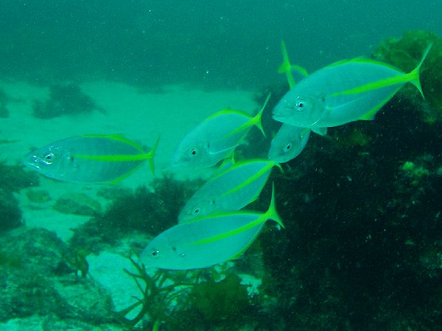・今週は富戸の紹介 2007年1月17日 ・天気 雨 ![]() ・気温 9℃ ・水温 15〜16℃ ・波高 0.5m ・風 北東(3) ・透視度 15m ・コメント 雨でしたが、外気は意外と寒くなく水中も快適でした。 三石方面では、タカベの群、アジの群、イワシの群、ムレハタタテダイの群を 楽しむことが出来ました。他にブリ、オオモンハタ、ミノカサゴ、ベニイザリウオや イソギンチャクモエビ、カザリイソギンチャクエビなども楽しめました。 クマノミ、ミツボシ、オヤビッチャ、ツユベラも元気にいました。 透明度も良く、いい海です。 |