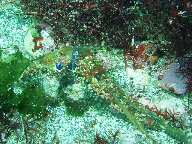 ・今週は富戸の紹介 2007年5月23日 ・天気 晴れ ![]() ・気温 24℃ ・水温 18℃ ・波高 0.0m ・風 東(3) ・透視度 6m〜8m ・コメント 最近、透明度が良くなったり悪くなったりと日替わりです。 砂地は意外と明るく、楽しめました。定番のダンゴウオ(かなり でかくなっています)、その近くにテンス、サギフエ、サカタザメ、 ヒラタエイ、カエルアンコウと見られました。 アオリイカの産卵ですが、もう 集まってきています。10杯以上来ていたようです。水温も上がって きていますので、そろそろウエットスーツでも大丈夫かも。 |