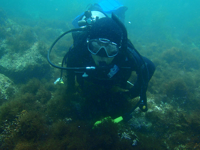 ![]() ・気温 18℃ ・水温 17℃〜18℃ ・波高 0.0 m ・風 南東(1) ・透視度 8m〜12m ・コメント 「 久々のダイブは? 」 |