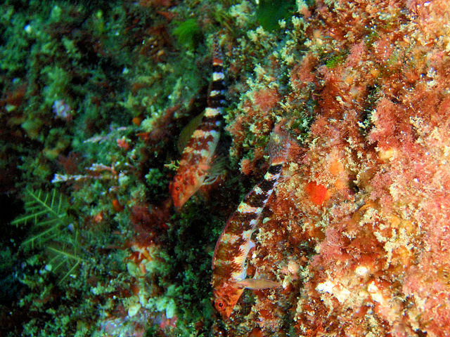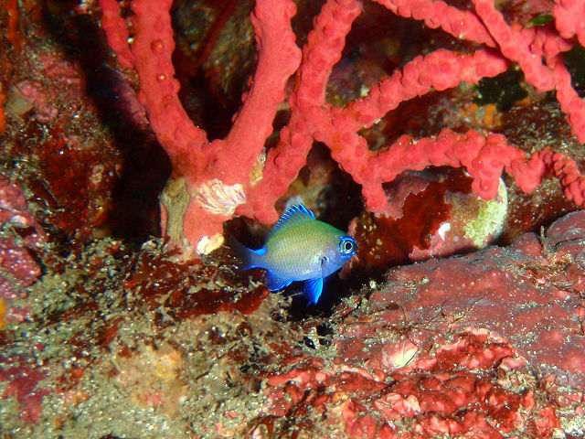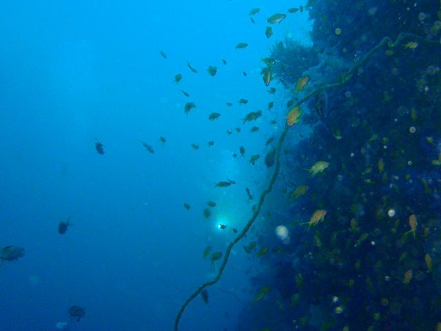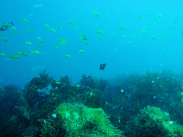 ![]() ・気温 22℃ ・水温 18℃〜20℃ ・波高 0.5 m ・風 北東(2) ・透視度 8m〜20m ・コメント 「 深場にはいい潮が・・・ 」 |