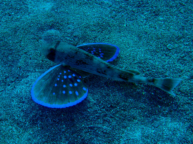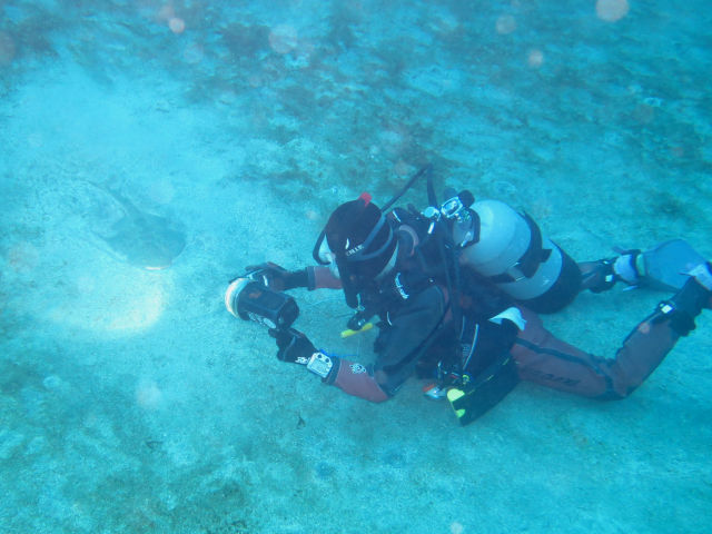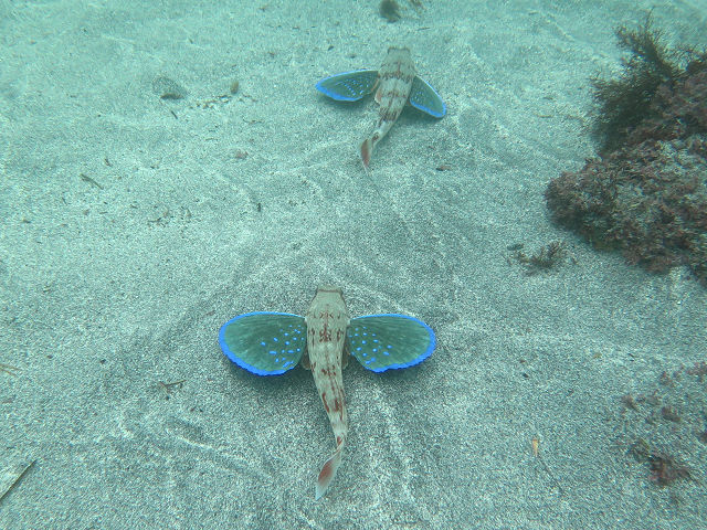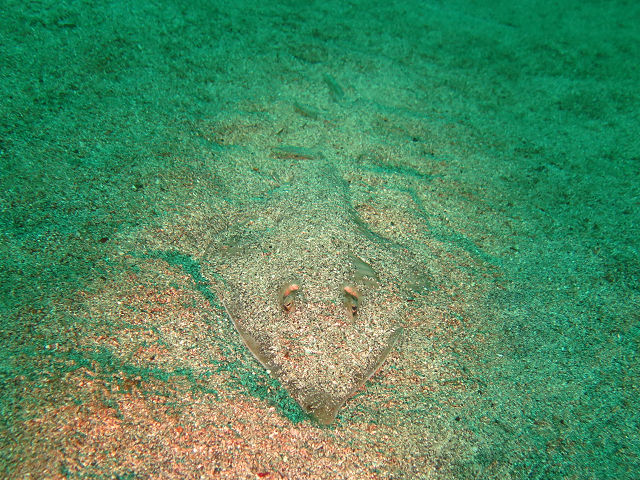 ・気温 21℃ ・水温 16℃ ・波高 1,0m ・風 東南東(3) ・透視度 10m〜15m ・コメント 「 今日は砂地を散策 」 |