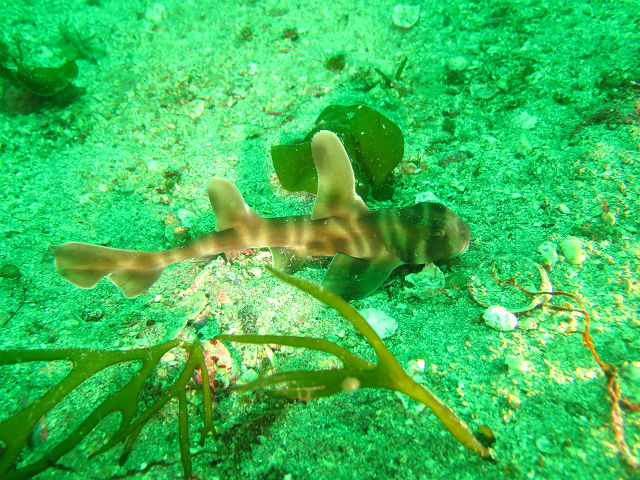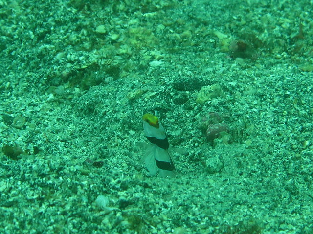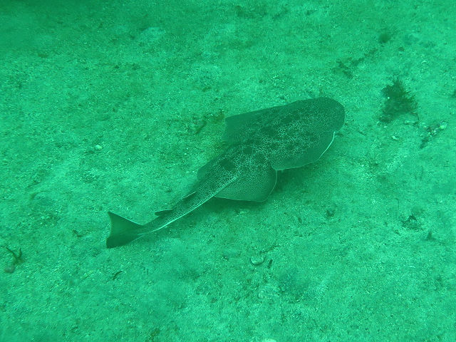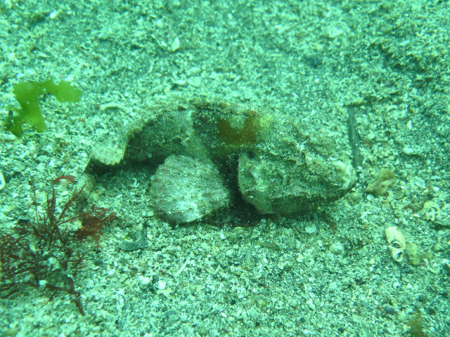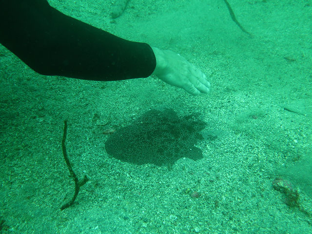 ・気温 19℃ ・水温 16℃ ・波高 0,5m ・風 南南東(1) ・透視度 8m〜15m ・コメント 「 砂地はどうかな〜 」 |