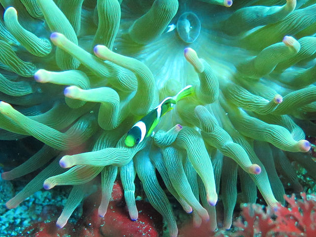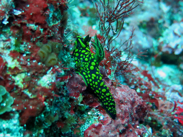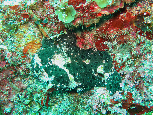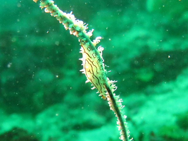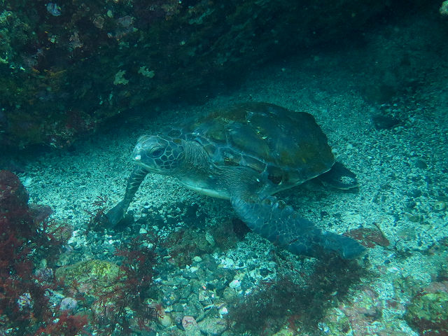 ・気温 24℃ ・水温 18℃〜20℃ ・波高 0,5m ・風 南南東(2) ・透視度 4m〜6m ・コメント 「 海洋公園も緑〜(^^;) 」 |