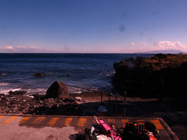 ・気温 8℃ ・水温 14℃ ・波高 0,5m ・風 南西(3) ・透視度 10m〜15m ・コメント 「 富戸もいい海です 」 |