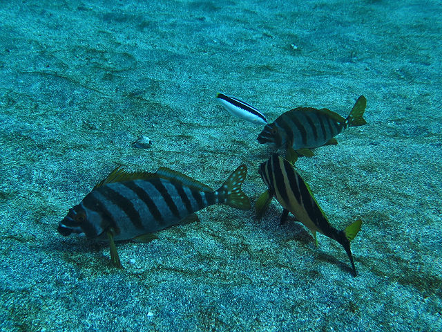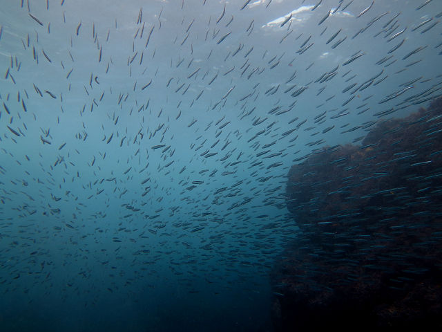 ・気温 27℃ ・水温 18℃〜19℃ ・波高 0,0m ・風 西南西(7) ・透視度 10m〜15m ・コメント 「 今日は群れが良い感じ 」 |