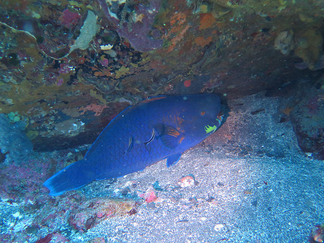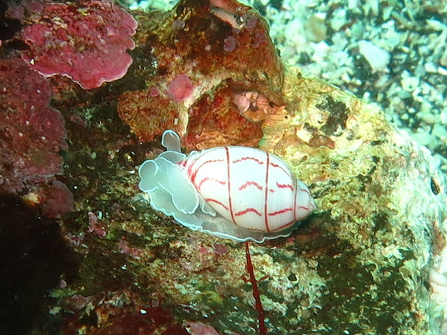 ・気温 24℃ ・水温 19℃ ・波高 0,0m ・風 東北東(3) ・透視度 5m〜10m ・コメント 「 昨日見たカイカムリ 」 |