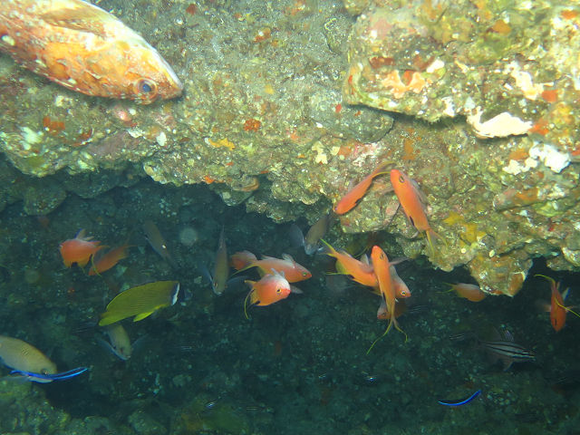 ・気温 21℃ ・水温 16℃ ・波高 0,5m ・風 東(2) ・透視度 10m〜15m ・コメント 「 深場に冷たい潮が 」 |