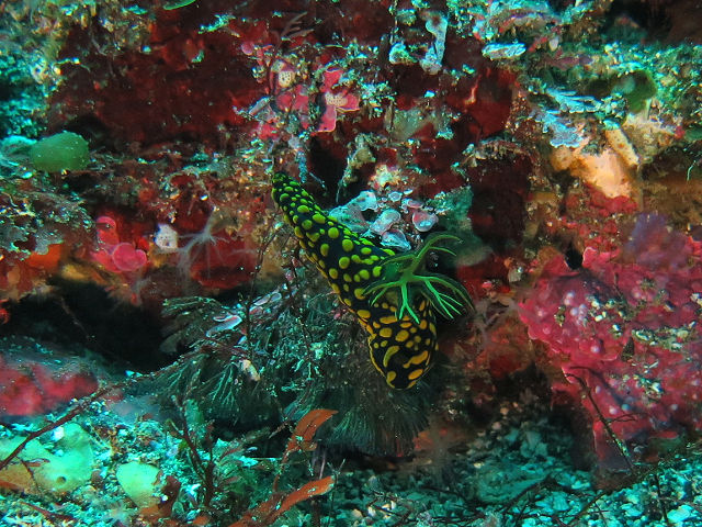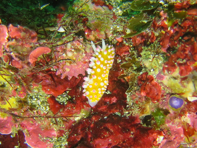 ・気温 22℃ ・水温 17℃〜18℃ ・波高 0,5m ・風 南南西(3) ・透視度 6m〜12m ・コメント 「 深場は少しいいかな 」 |
