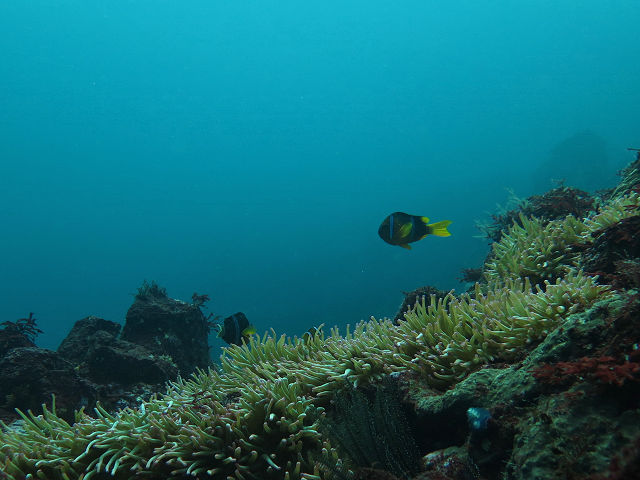 ・気温 25℃ ・水温 17℃〜18℃ ・波高 0,5m ・風 西南西(3) ・透視度 8m〜12m ・コメント 「 透明度は? まあまあ? 」 |
