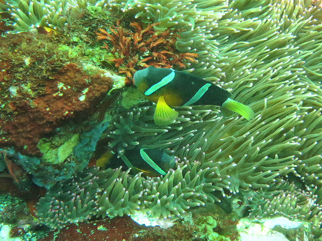 ・気温 22℃ ・水温 17℃ ・波高 0,5m ・風 南西(5) ・透視度 10m〜15m ・コメント 「 透明度がいい〜 」 |