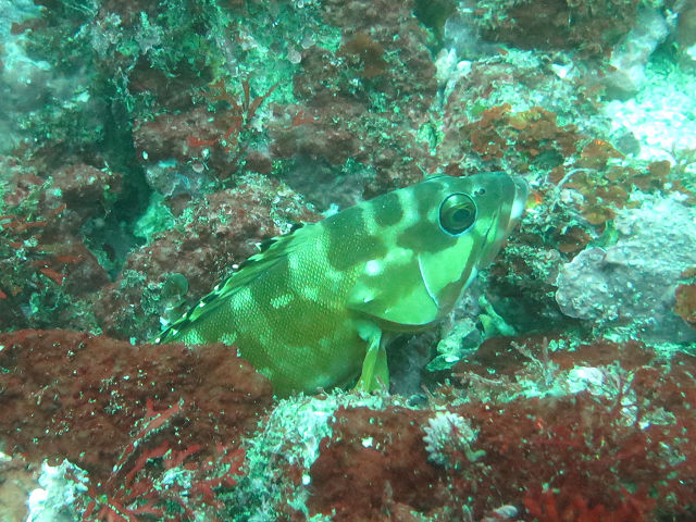 ・気温 23℃ ・水温 19℃ ・波高 0,0m ・風 西南西(4) ・透視度 5m〜15m ・コメント 「 深場に良い潮が回ってきてました 」 |