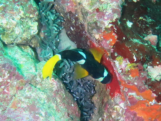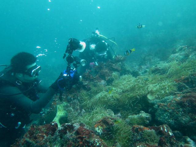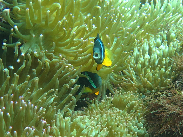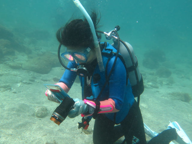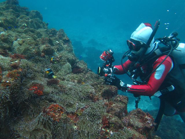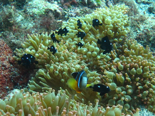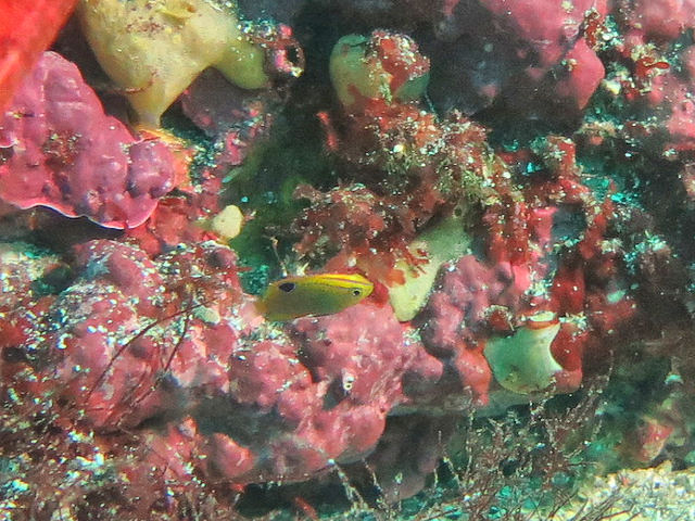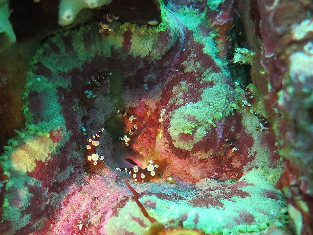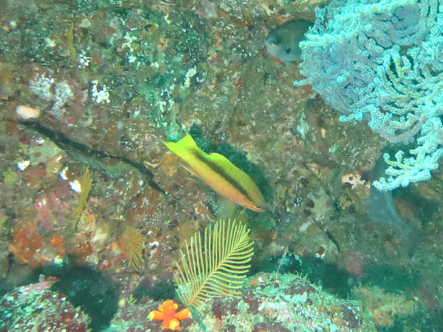 ・気温 24℃ ・水温 24℃ ・波高 0,5m ・風 東北東(2) ・潮 干潮 11:14 (58) 大潮 ・流れ 流れ 少し うねり 少し ・透視度 8m〜15m ・コメント 「 綺麗なエリアもありました 」 |