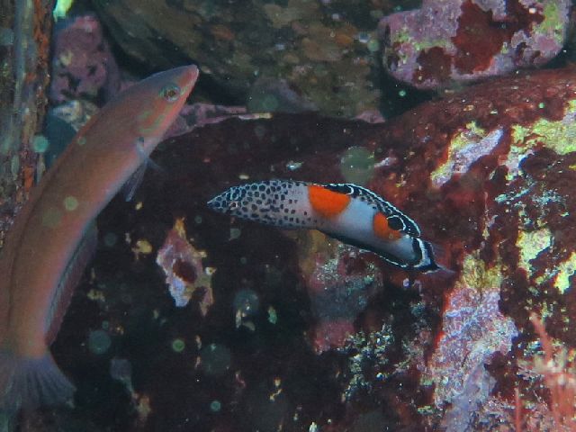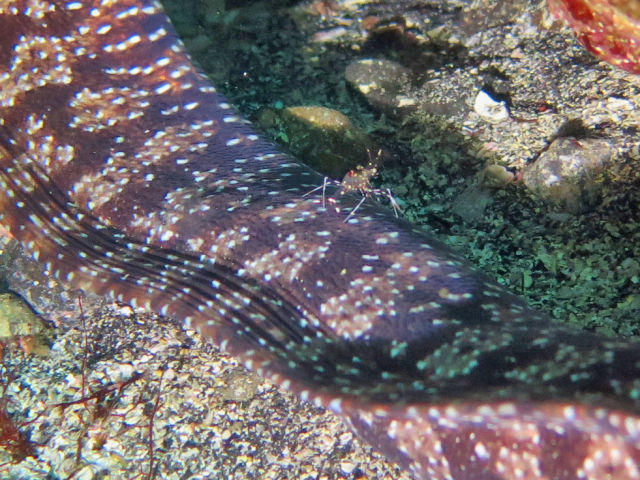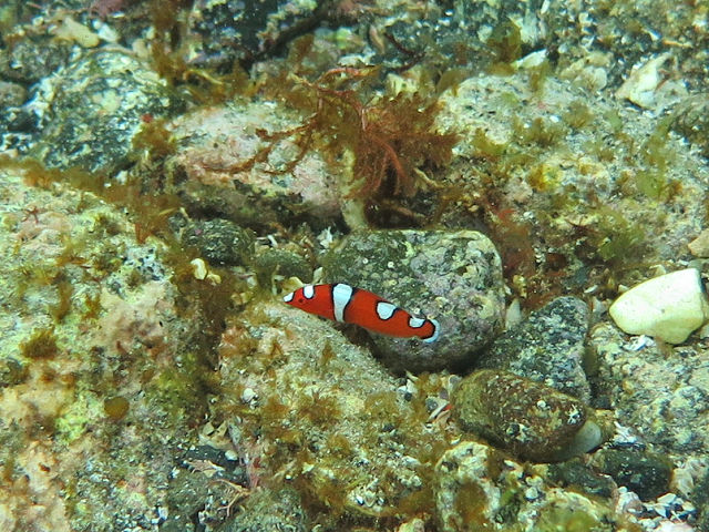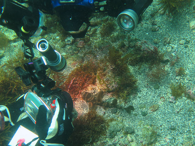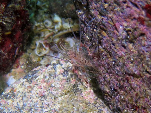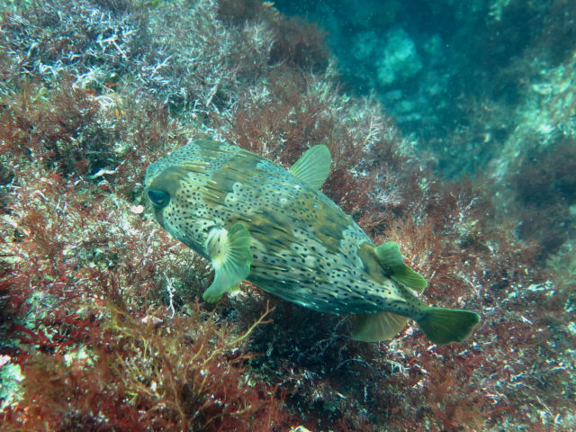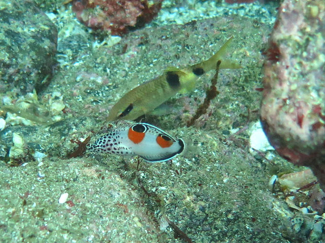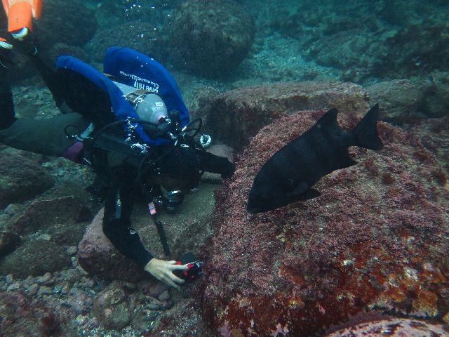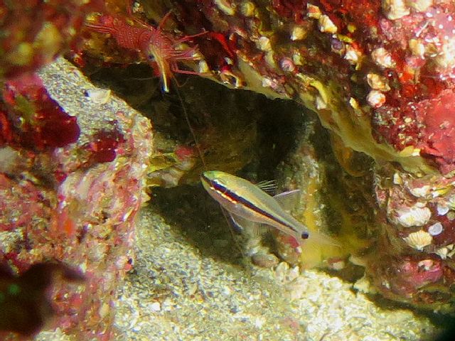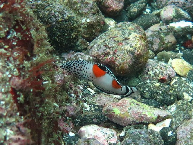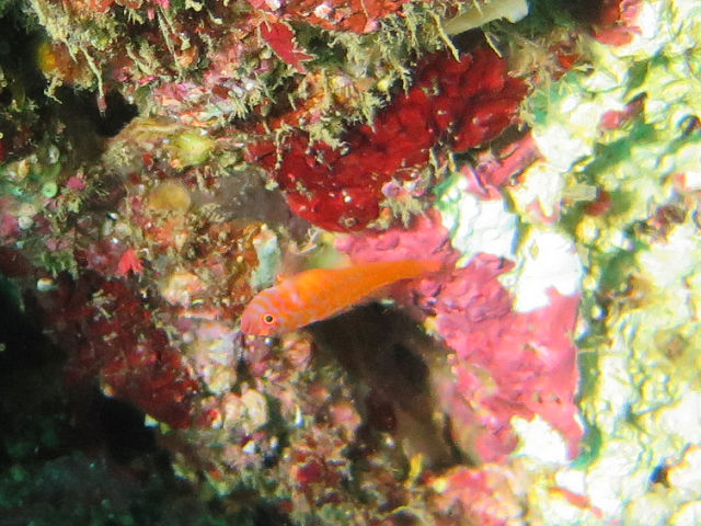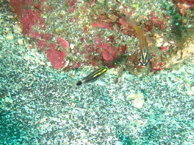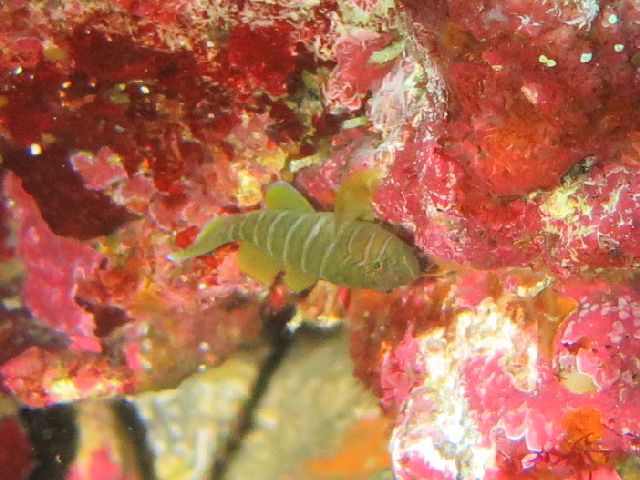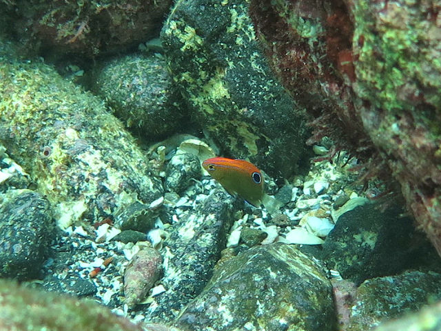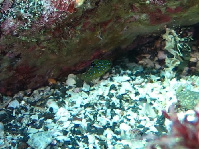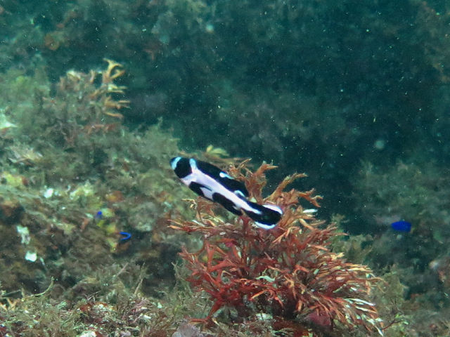 ・気温 20℃ ・水温 21℃ ・波高 0,5m ・風 北東(1) ・潮 干潮 11:22 (86) 大潮 ・流れ 流れ なし うねり なし ・透視度 10m〜15m ・コメント 「 人気者が 」 |