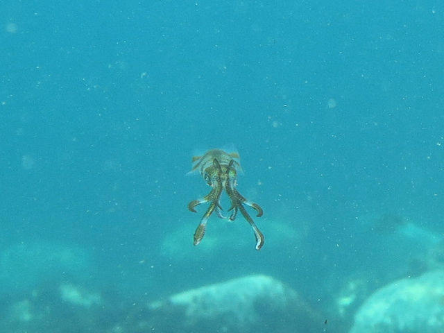 ・気温 29℃ ・水温 20℃ ・波高 0,0m ・風 南南西(5) ・透視度 6m〜8m ・コメント 「 ワキノハマのアオリイカ 」 |