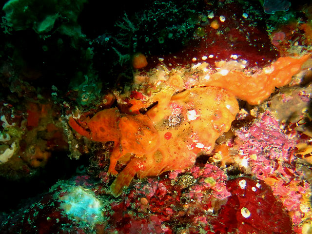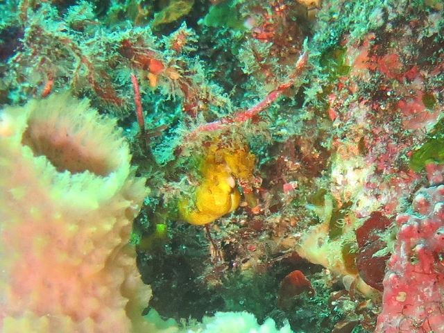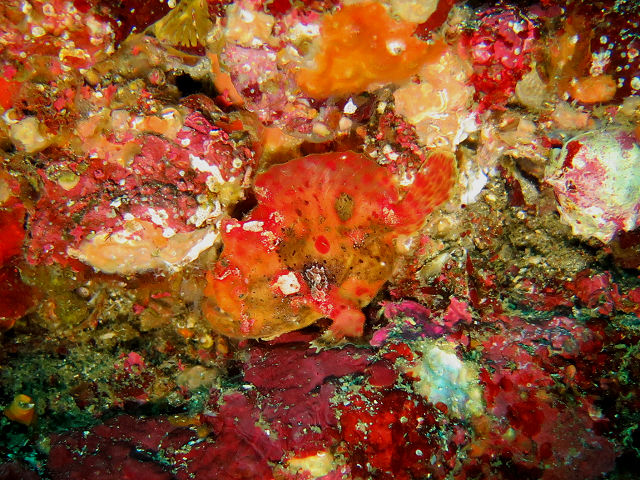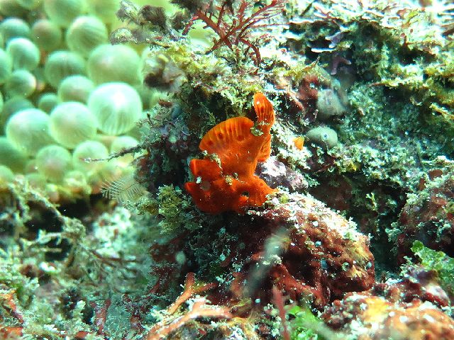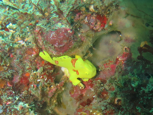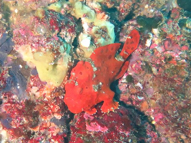 ・気温 12℃ ・水温 18℃ ・波高 0,5m 沖波 1,5m ・風 西(1m/s) ・潮 干潮 11:00 (94cm) 大潮 ・流れ 流れ あり うねり なし ・透視度 10m〜15m ・コメント 「 カエルアンコウ祭り(^^) 」 |