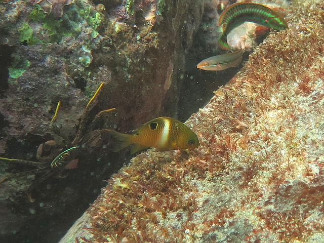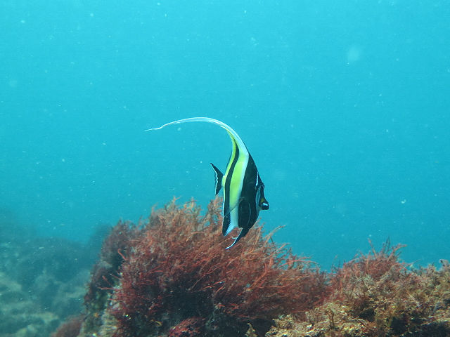 ・気温 32℃ ・水温 24℃〜25℃ ・波高 0,5m ・風 南東(2) ・潮 満潮 12:47(119) 長潮 ・流れ 流れあり 中 ・透視度 6m〜10m ・コメント 「 透明度が少し落ちていました 」 |