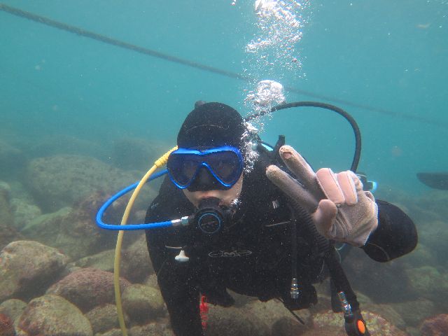 ・気温 18℃ ・水温 22℃ ・波高 0,5m ・風 北東(3) ・流れ 流れ なし うねり 少し ・透視度 8m〜12m ・コメント 「 今日はヨコバマで体験 」 |