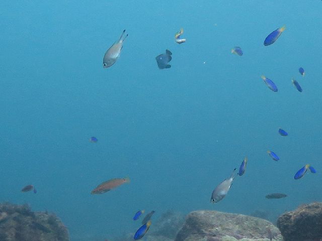 ・気温 18℃ ・水温 22℃ ・波高 0,5m ・風 北東(2) ・潮 満潮 12:17 (135) 小潮 ・流れ 流れ 少しあり うねり 少し ・透視度 8m〜12m ・コメント 「 白っぽい海域も 」 |