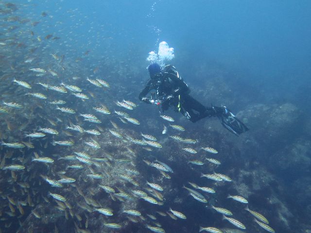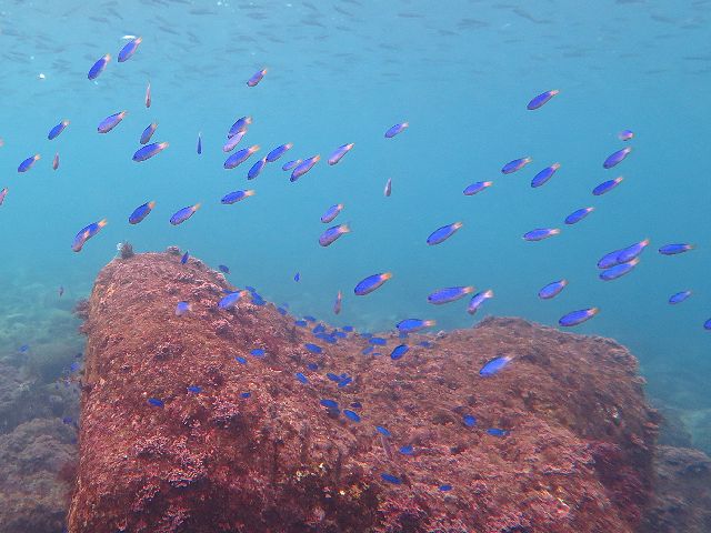 ・気温 31℃ ・水温 24℃〜27℃ ・波高 0,5m ・風 南西(2) ・透視度 8m〜12m ・コメント 「 季節来遊魚が続々と 」 |