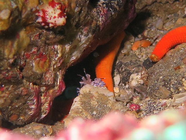 ・気温 24℃ ・水温 24℃ ・波高 0,5m ・風 南東(1) ・潮 干潮 11:46 (69) 中潮 ・流れ 流れ なし うねり なし ・透視度 6m〜10m ・コメント 「 透明度は一進一退(^^;) 」 |