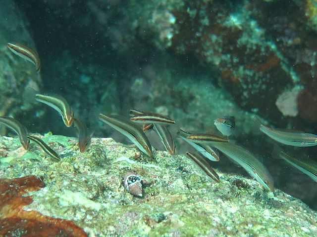 ・気温 29℃ ・水温 26℃ ・波高 0,5m ・風 東(2) ・潮 干潮 12:17 (41) 中潮 ・流れ 少しあり うねり なし ・透視度 8m〜12m ・コメント 「 季節来遊魚探しなのだが、その2 」 |