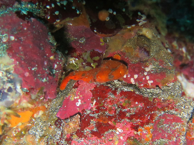 ・気温 12℃ ・水温 18℃ ・波高 0,5m 沖波 1,5m ・風 北(2m/s) ・潮 干潮 10:17 (92cm) 大潮 ・流れ 流れ なし うねり なし ・透視度 10m〜15m ・コメント 「 イロカエルアンコウ三昧再び(^^) 」 |