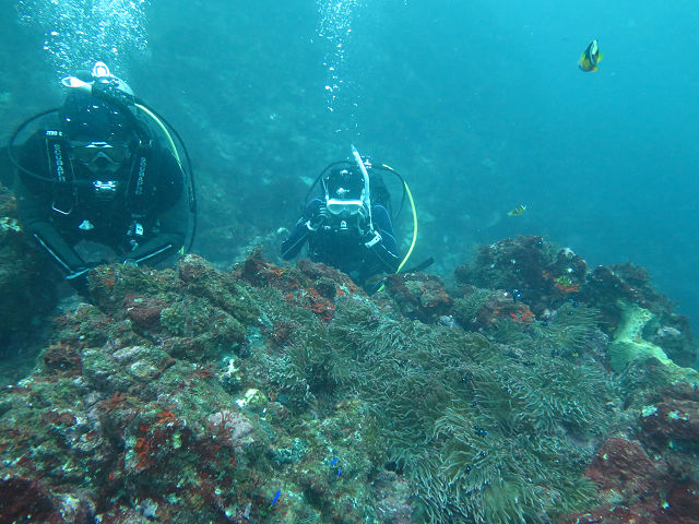 ・気温 27℃ ・水温 26℃ ・波高 1,0m ・風 南西(4) ・潮 干潮 09:17 (47) 中潮 ・流れ 流れ なし うねり 少しあり ・透視度 10m〜15m ・コメント 「 リフレッシュダイビング」 |