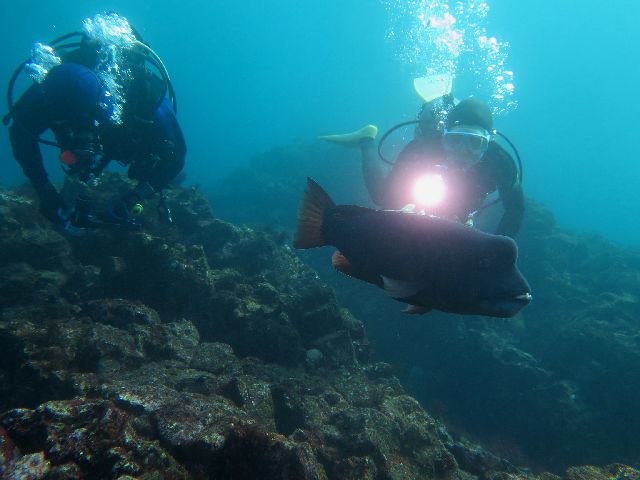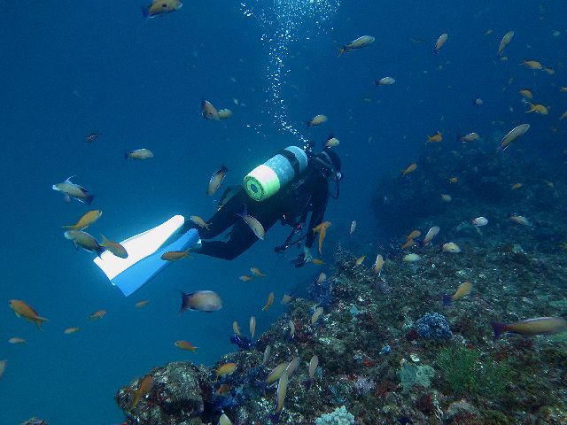 ・気温 31℃ ・水温 25℃ ・波高 0,5m ・風 西南西(7) ・潮 干潮 13:15 (62) 中潮 ・流れ 少しあり うねり あり ・透視度 8m〜12m ・コメント 「 沖の風は強いがEN,EXは問題なし (^^) 」 |