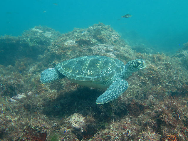 ・気温 32℃ ・水温 23℃〜24℃ ・波高 0,5m ・風 南西(3) ・透視度 8m〜12m ・コメント 「 久しぶりにカメ 」 |