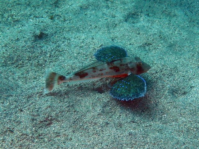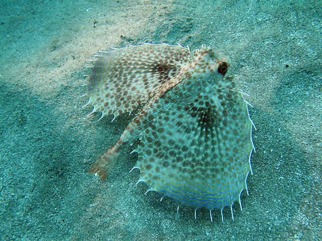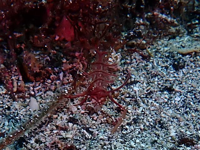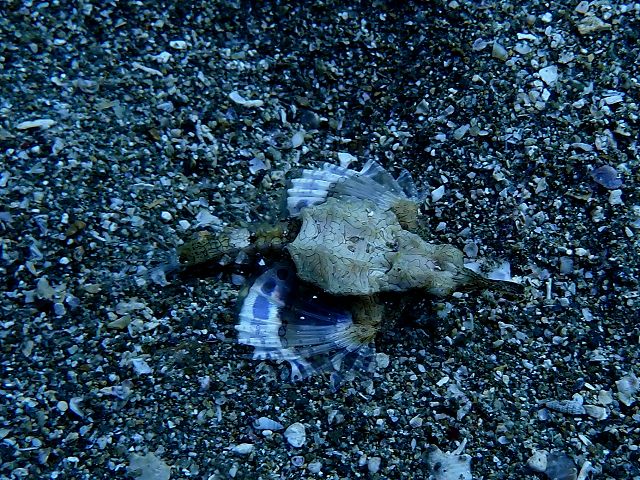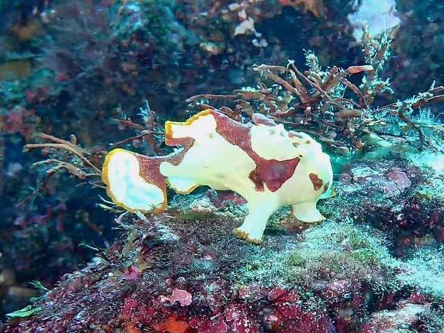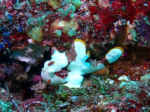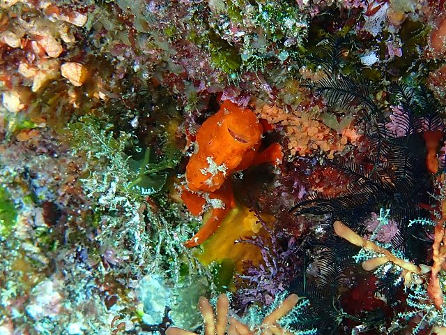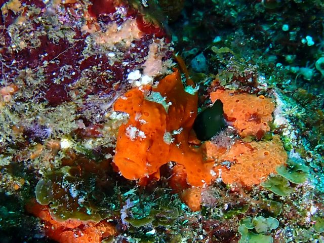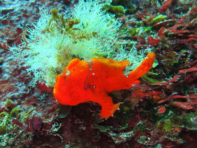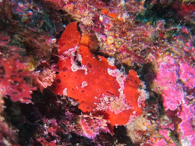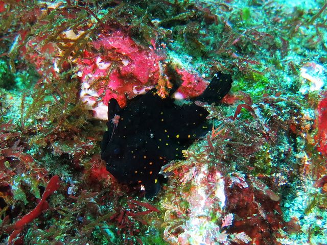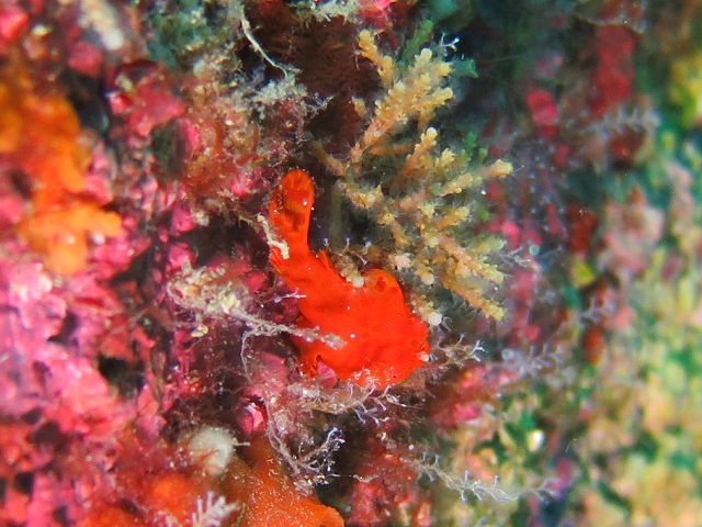 ・気温 8℃ (12:00) ・水温 14℃ ・波高 0,5m 沖波 1,5m ・風 北北東 4m/s (12:00) ・潮 満潮 16:41(150cm) 干潮 11:06(69cm) 大潮 ・流れ 流れ なし うねり 少しあり ・透視度 8m〜10m ・コメント 「イロカエルアンコウ×3」 |