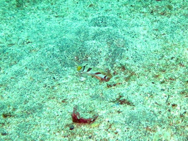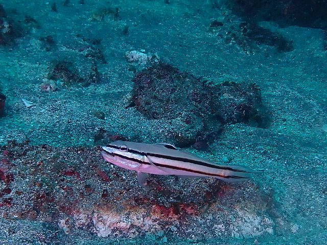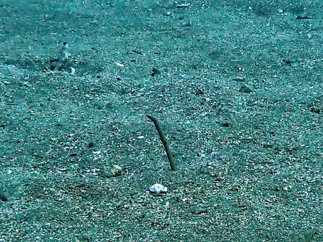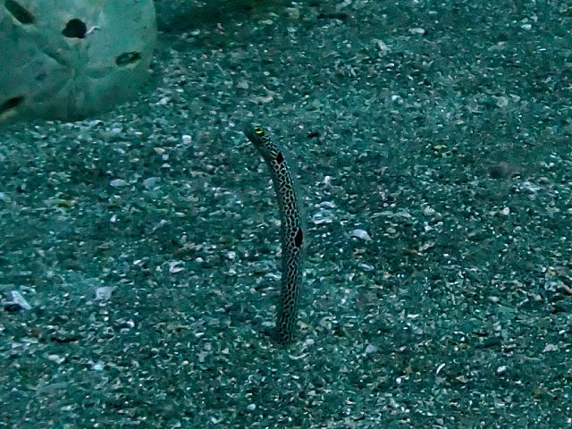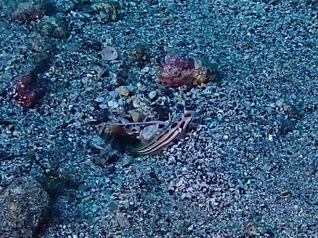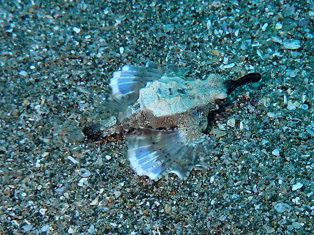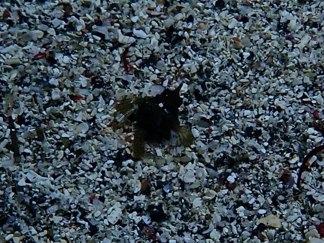 ・気温 23℃ (12:00) ・水温 23℃〜24℃ ・波高 0,5m 沖波 1,5m ・風 北東 3m/s (12:00) ・潮 干潮 11:09(49cm) 満潮 17:11(165cm) 中潮 ・流れ 流れ なし うねり 少し ・透視度 6m〜10m ・コメント 「砂地探索」 |