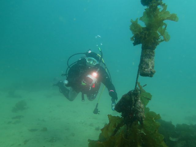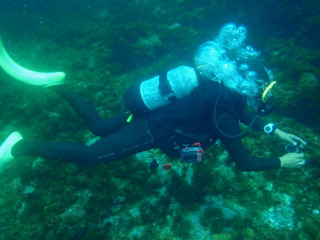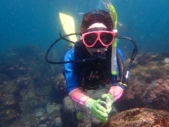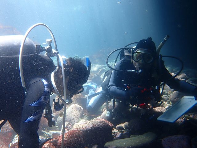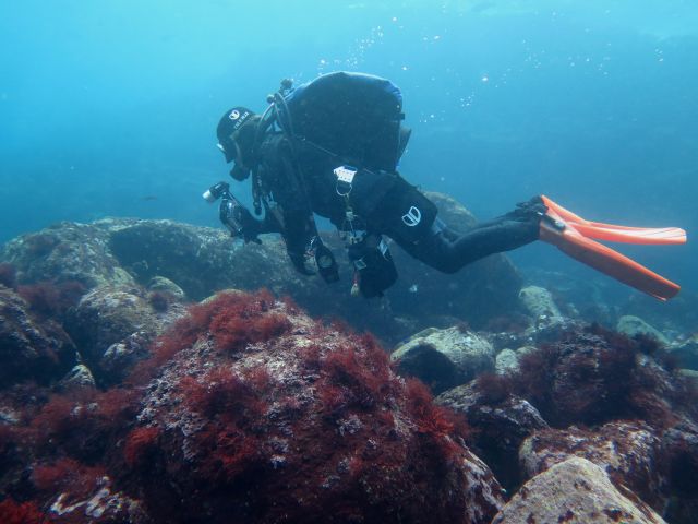 ・気温 14℃ (12:00) ・水温 16℃ ・波高 0,7m 沖波 1,5m ・風 東 2m/s (12:00) ・潮 満潮 06:56(138cm) 干潮 13:27(33cm) 中潮 ・流れ 流れ なし うねり なし ・透視度 8m〜10m ・コメント 「調査ダイビング」 |