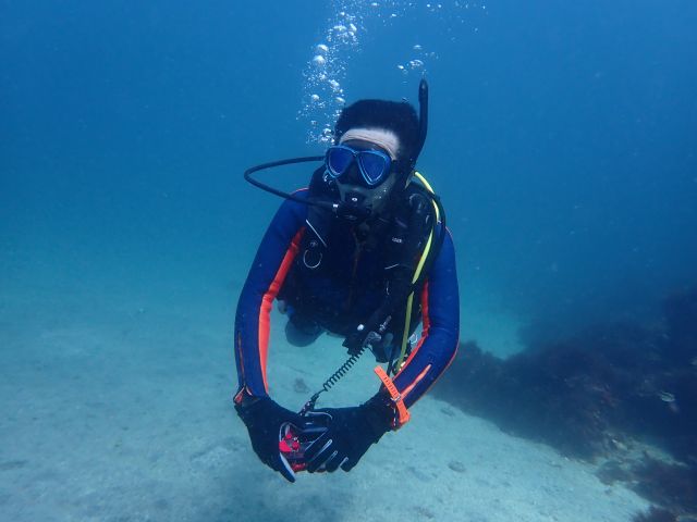 ・気温 17℃ (12:00) ・水温 16℃ ・波高 0,0m 沖波 1,5m ・風 東 4m/s (12:00) ・潮 満潮 09:01(113cm) 干潮 17:55(50cm) 小潮 ・流れ 流れ なし うねり なし ・透視度 8m〜10m ・コメント 「感謝、感謝のダイビング♪」 |