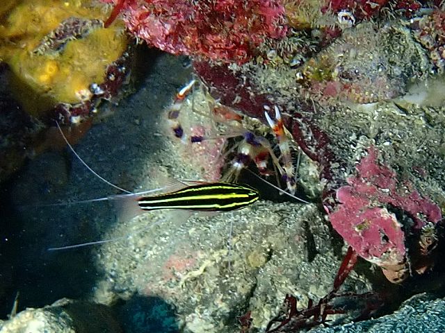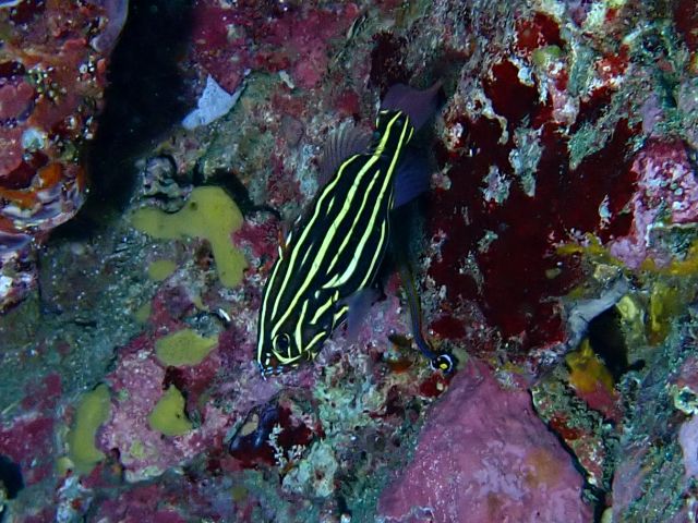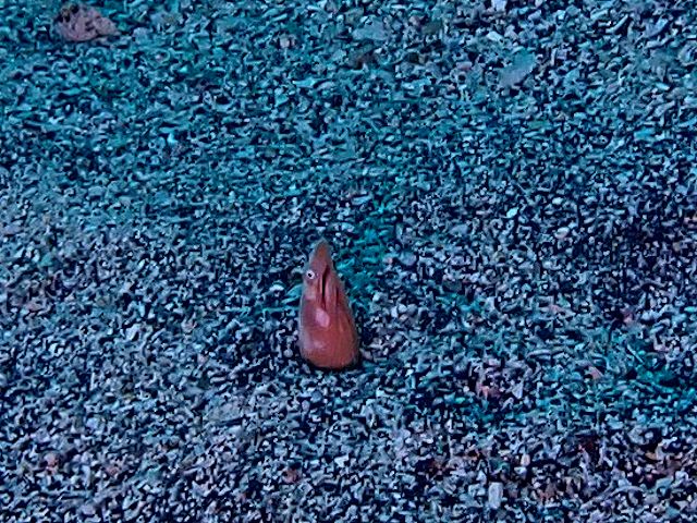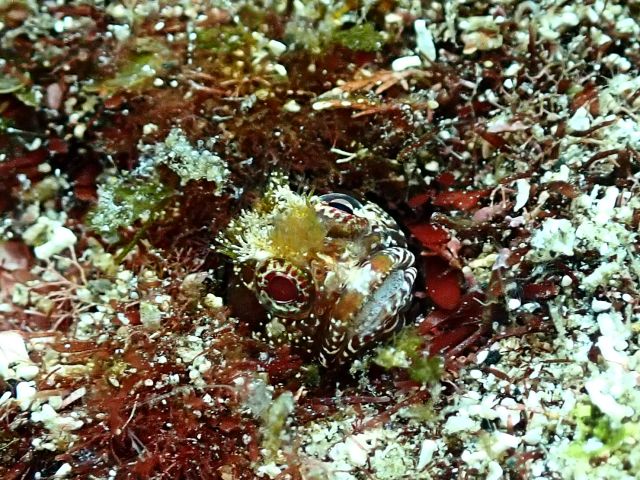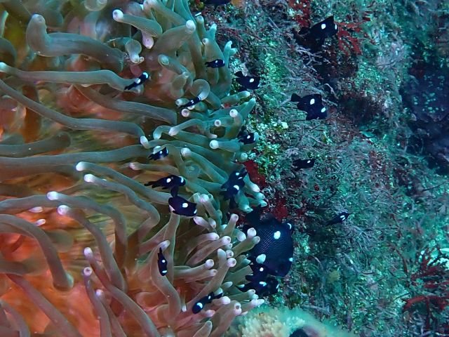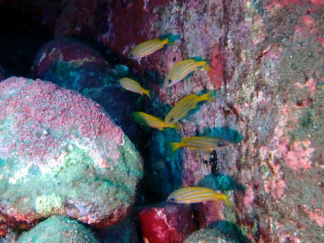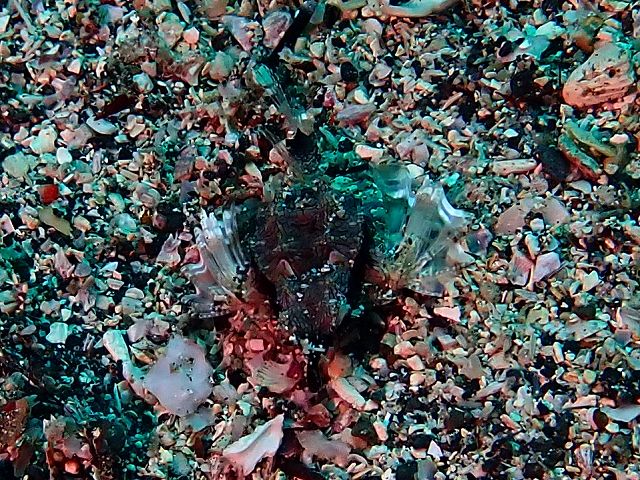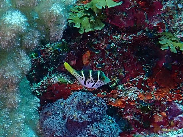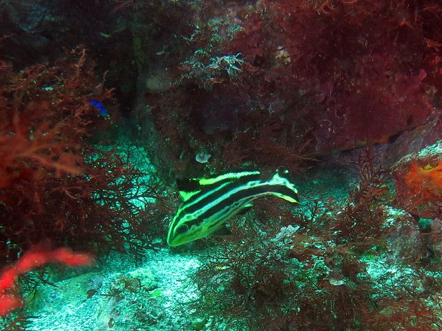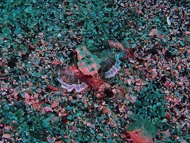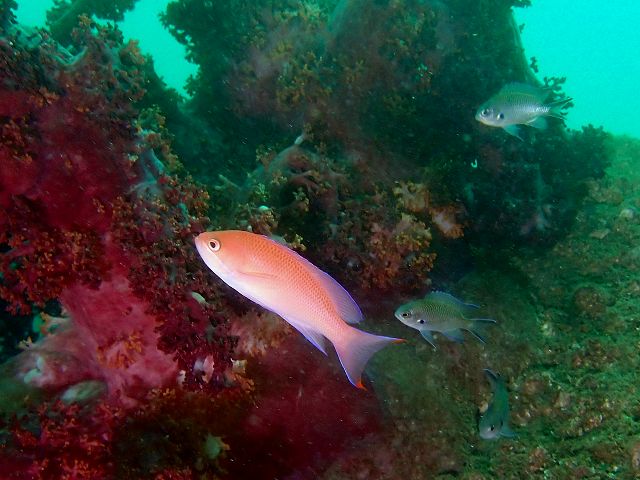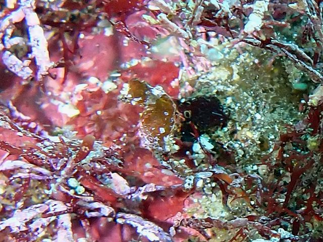 ・気温 24℃ (12:00) ・水温 20℃〜21℃ ・波高 0,2m 沖波 1,5m ・風 東南東 2m/s (12:00) ・潮 干潮 16:23(52cm) 満潮 09:32(118cm) 小潮 ・流れ 流れ 少しあり うねり 少しあり ・透視度 8m〜15m ・コメント 「暗い感じですが見えてます」 |