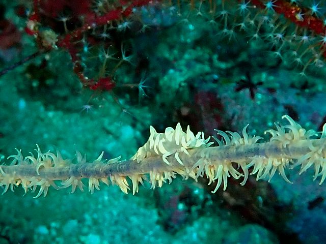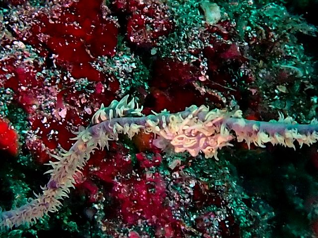 ・気温 14℃ (12:00) ・水温 18℃〜19℃ ・波高 0,8m 沖波 2,0m ・風 西南西 10m/s (12:00) ・潮 干潮 09:39(86cm) 満潮 15:12(161cm) 中潮 ・流れ 流れ なし うねり あり ・透視度 8m〜12m ・コメント 「水中クリスマスツリー」 |