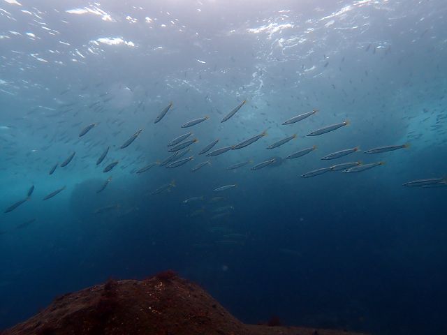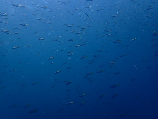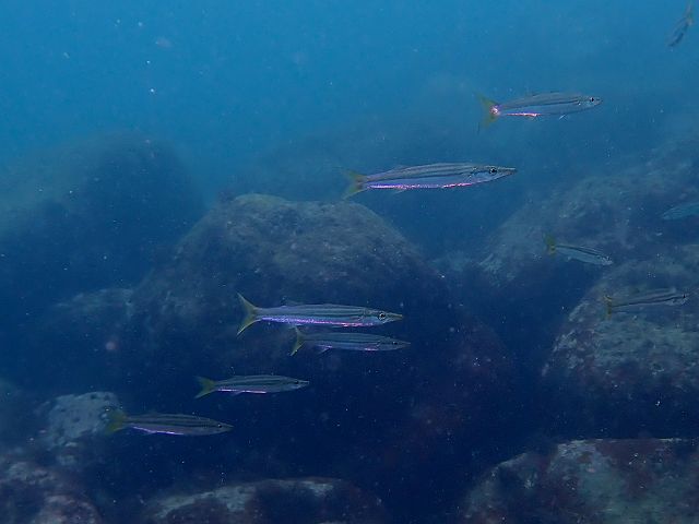 ・気温 11℃ (12:00) ・水温 18℃〜19℃ ・波高 0,3m 沖波 2,0m ・風 北東 3m/s (12:00) ・潮 干潮 11:06(102cm) 満潮 16:21(167cm) 中潮 ・流れ 流れ なし うねり あり ・透視度 8m〜12m ・コメント キビナゴとイナダ 飽きません |