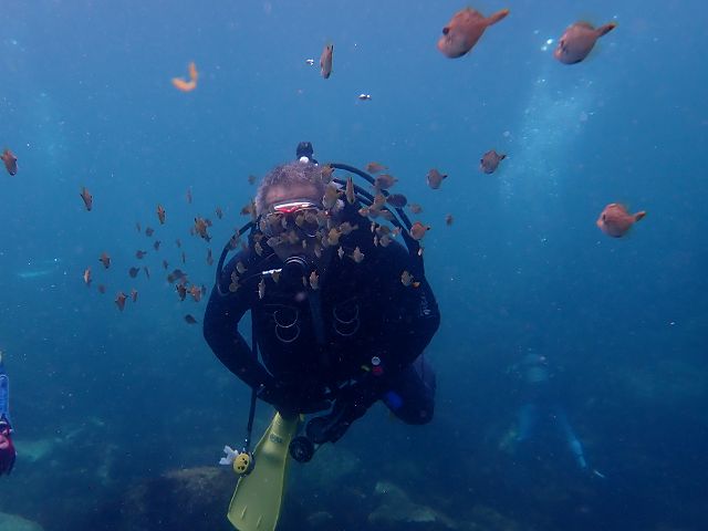 ・気温 21℃ (12:00) ・水温 17℃〜18℃ ・波高 0,0m 沖波 1,5m ・風 東南東 3m/s (12:00) ・潮 干潮 10:08(32cm) 満潮 16:36(139cm) 中潮 ・流れ 流れ なし うねり なし ・透視度 8m〜10m ・コメント 「久しぶり〜♪」 |