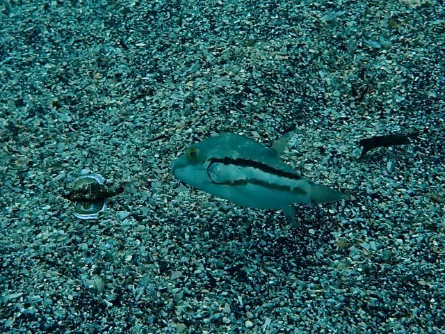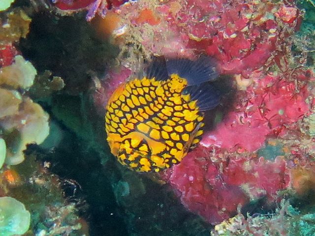・気温 23℃ (12:00) ・水温 18℃〜19℃ ・波高 0,3m 沖波 1,5m ・風 北東 2m/s (12:00) ・潮 干潮 16:08(49cm) 満潮 08:32(121cm) 中潮 ・流れ 流れ 少しあり うねり 少しあり ・透視度 8m〜10m ・コメント 「小さいの見てきました」 |