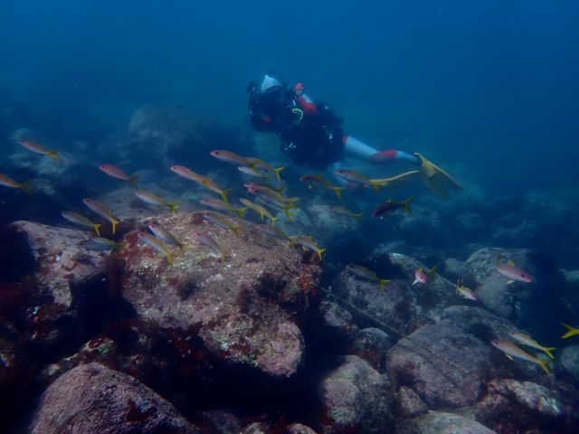 ・気温 29℃ (12:00) ・水温 21℃〜25℃ ・波高 0,0m 沖波 1,5m ・風 東北東 3m/s (12:00) ・潮 干潮 14:24(66cm) 満潮 08:50(130cm) 中潮 ・流れ 流れ あり うねり あり ・透視度 8m〜10m ・コメント 「台風が過ぎて穏やかに」 |