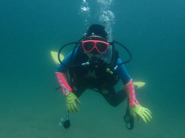 ・気温 21℃ (12:00) ・水温 20℃ ・波高 0,0m 沖波 1,5m ・風 南東 2m/s (12:00) ・潮 干潮 14:32(30cm) 満潮 07:08(134cm) 中潮 ・流れ 流れ 少しあり うねり なし ・透視度 5m〜8m ・コメント 「捜し物は見つからず」 |