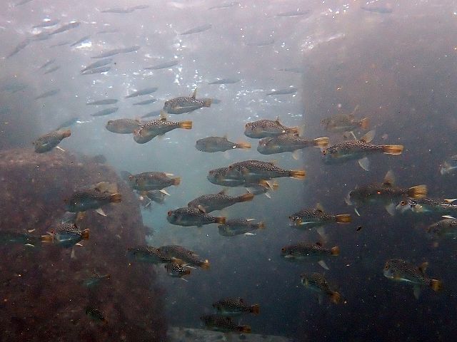 ・気温 18℃ (12:00) ・水温 21℃〜22℃ ・波高 0,0m 沖波 2,5m ・風 西南西 11m/s (12:00) ・潮 干潮 15:43(123cm) 満潮 11:29(134cm) 中潮 ・流れ 流れ なし うねり 少し ・透視度 10m〜15m ・コメント 「人気者がたくさん!」 |