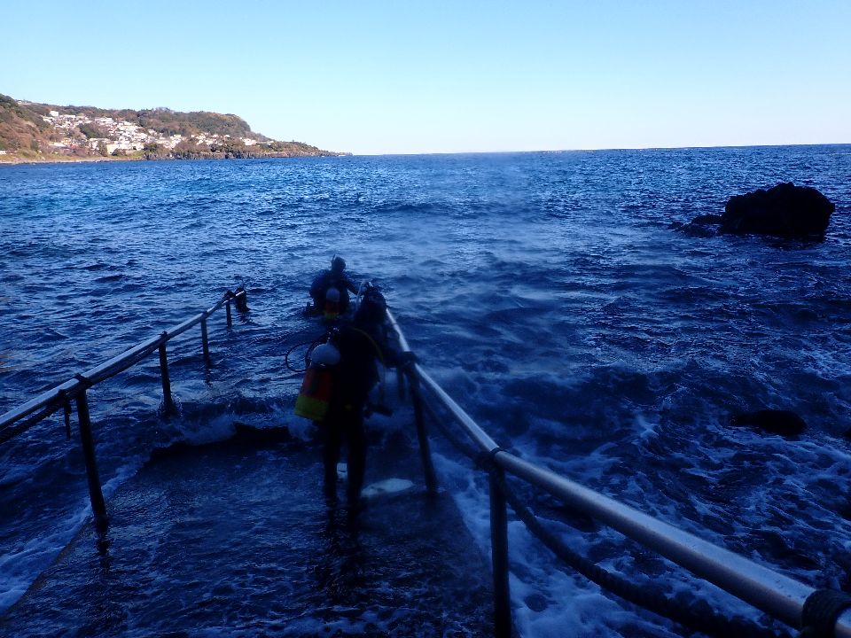 ・気温 9℃ (12:00) ・水温 16℃〜17℃ ・波高 0,5m(EN/EX) 沖波 2,0m→1,5m ・風 南東 1m/s (12:00) ・潮 干潮 14:52(73cm) 満潮 08:49(139cm) 小潮 ・流れ 流れ なし うねり 少し ・透視度 10m〜15m ・コメント 初潜りはヨコバマでした |