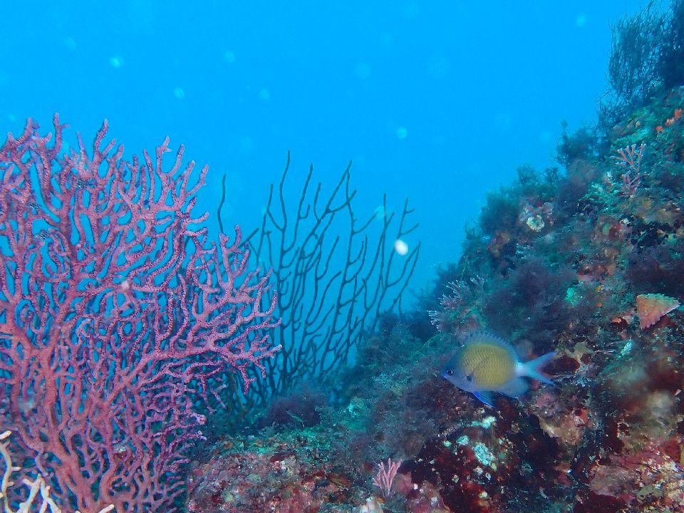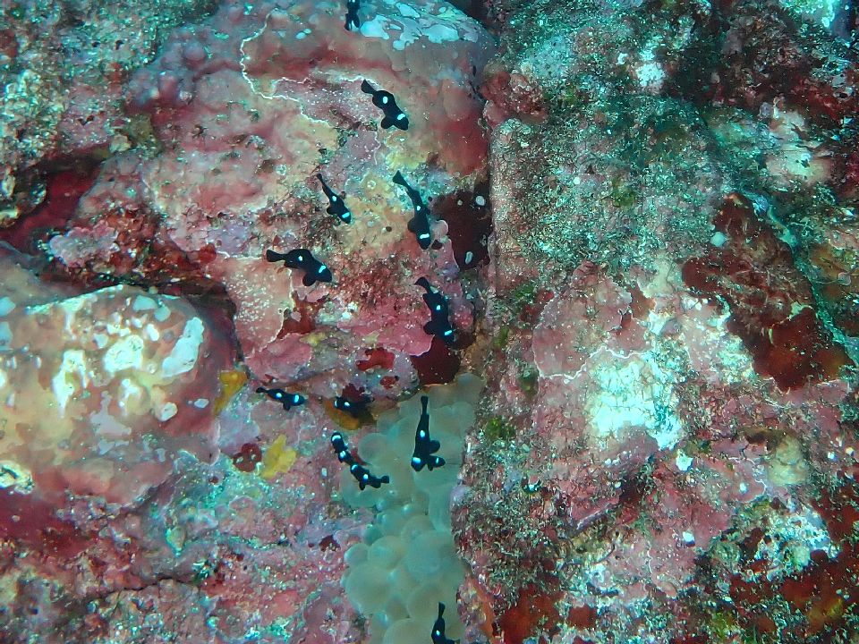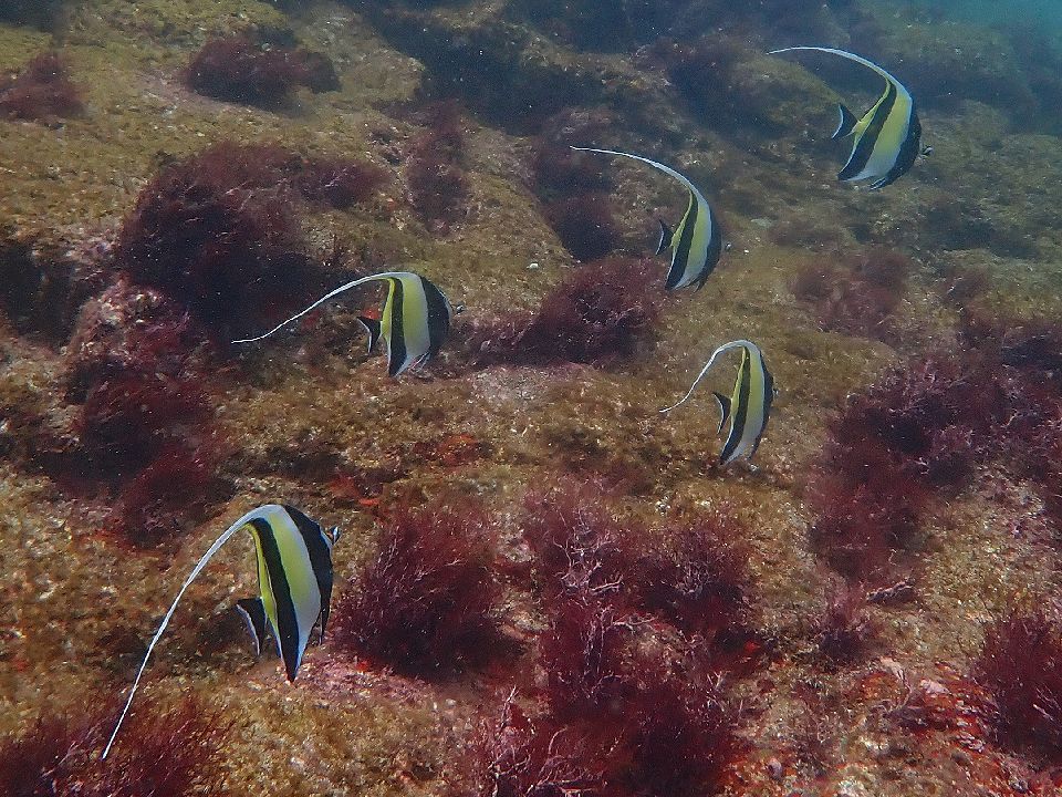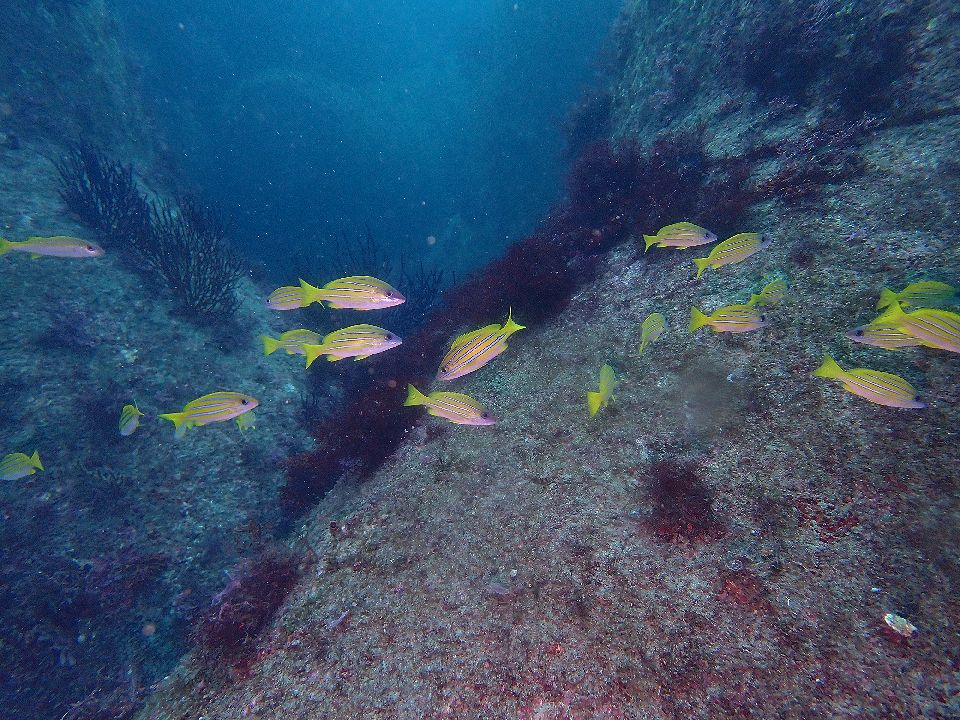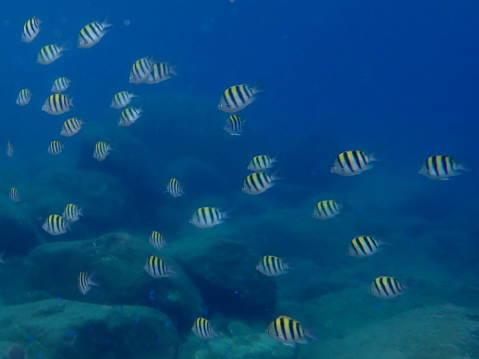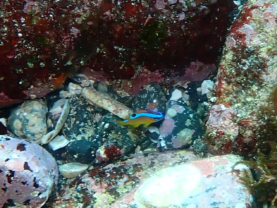 ・気温 17℃ (12:00) ・水温 23℃ ・波高 1,0m(EN/EX) 沖波 1,5m ・風 北北西 2m/s (12:00) ・潮 干潮 09:55(85cm) 満潮 15:31(162cm) 大潮 ・流れ 流れ 少し うねり あり ・透視度 10m〜15m ・コメント 少しバシャバシャ |