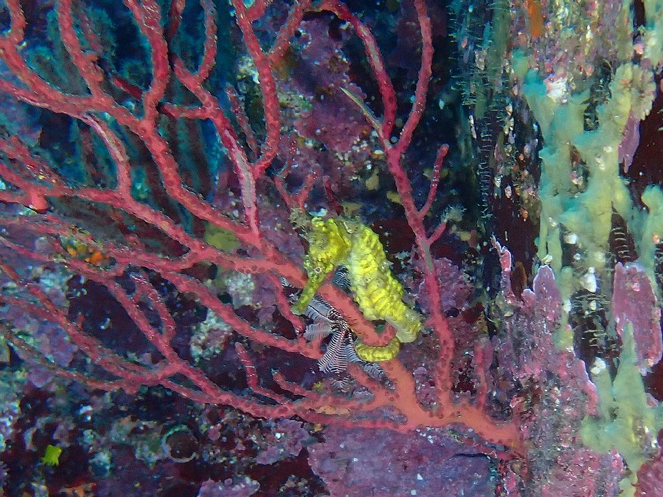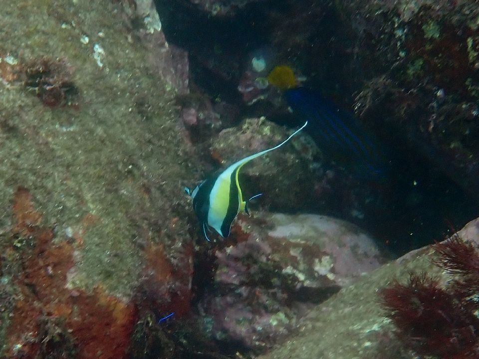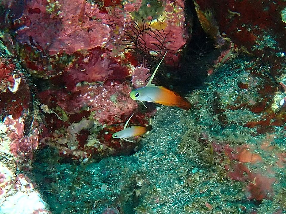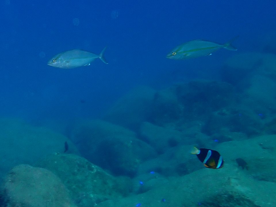 ・気温 21℃ (12:00) ・水温 23℃〜24℃ ・波高 0,3m(EN/EX) 沖波 2,0mうねりを伴う ・風 北東 1m/s (12:00) ・潮 干潮 10:26(80cm) 満潮 16:04(155cm) 大潮 ・流れ 流れ なし うねり あり ・透視度 8m〜12m ・コメント 透明度は微妙 |