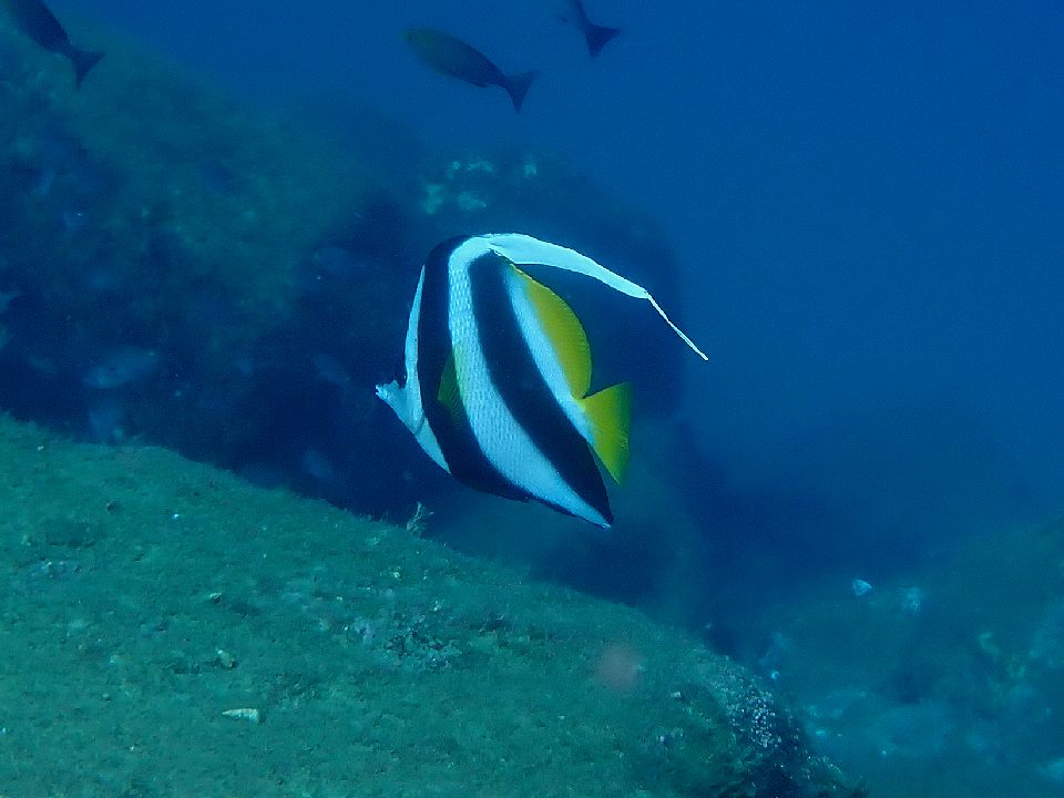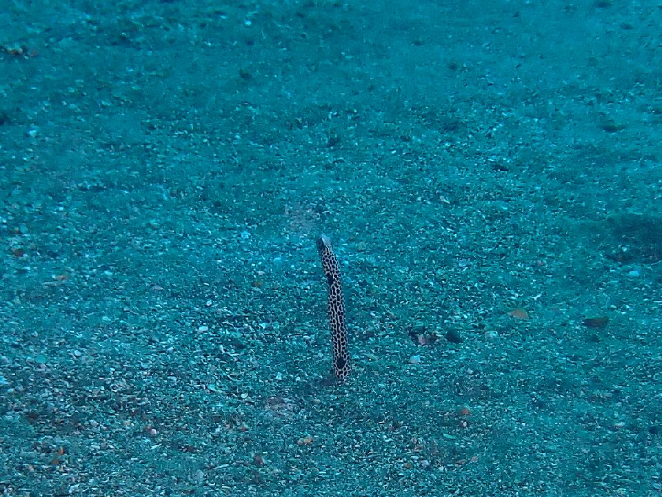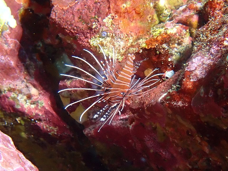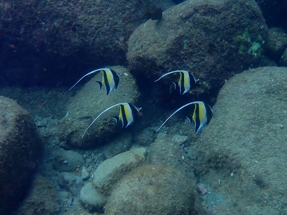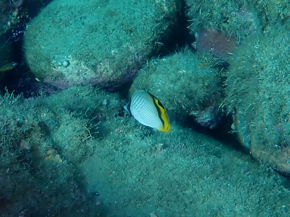 ・気温 21℃ (12:00) ・水温 23℃〜24℃ ・波高 0,3m(EN/EX) 沖波 2,0mうねりを伴う ・風 北東 1m/s (12:00) ・潮 干潮 10:26(80cm) 満潮 16:04(155cm) 大潮 ・流れ 流れ なし うねり あり ・透視度 8m〜12m ・コメント 透明度は微妙 |