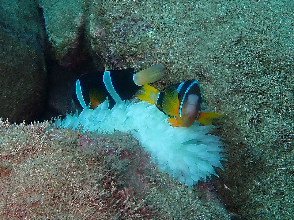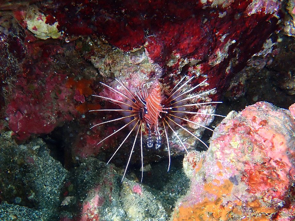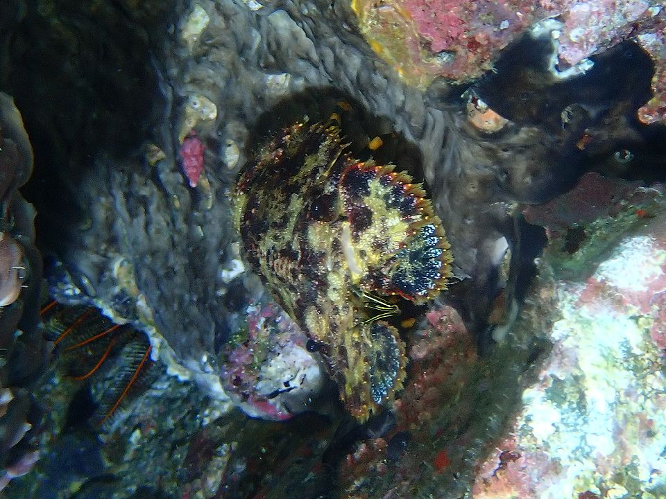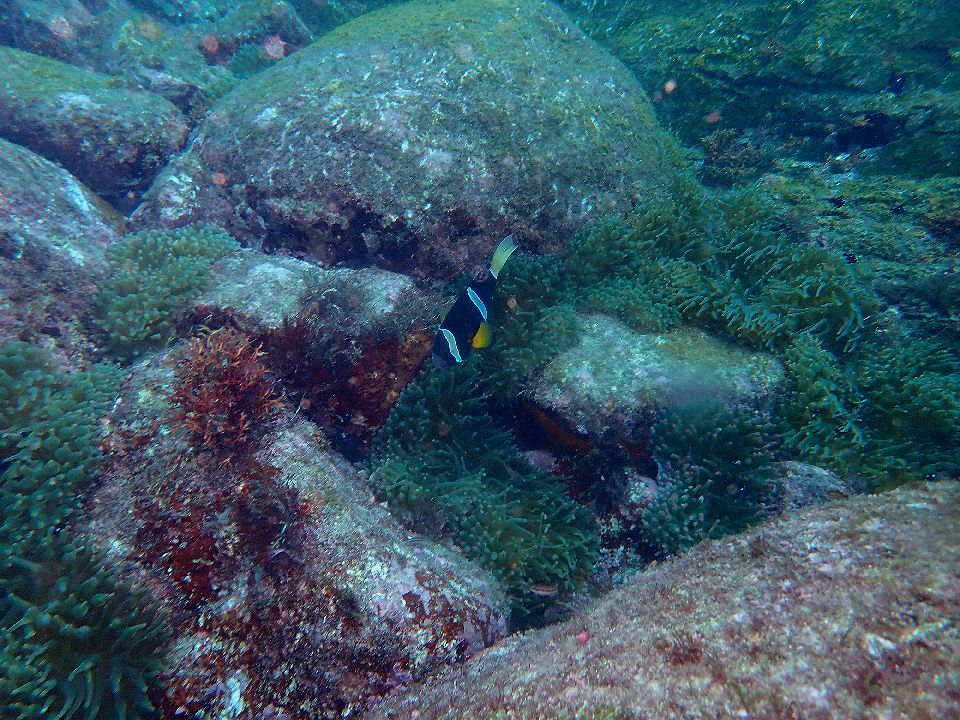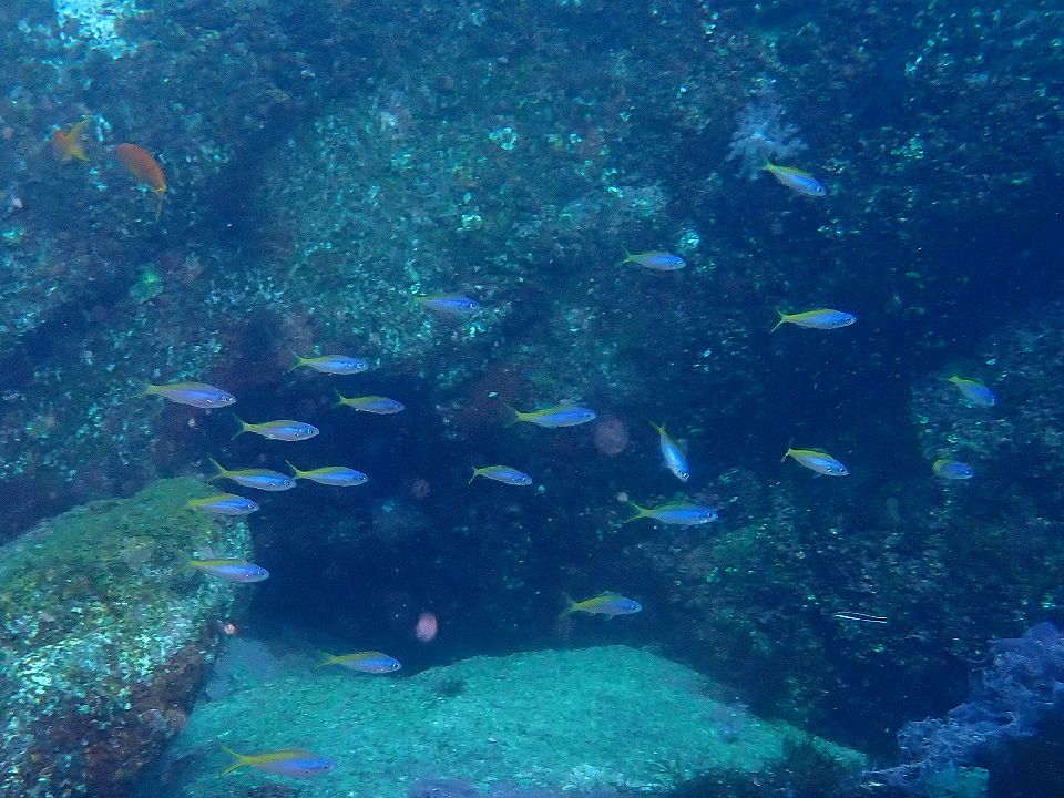 ・気温 10℃ (12:00) ・水温 23℃ ・波高 0,2m(EN/EX) 沖波 3,0mうねりを伴う ・風 北北東 5m/s (12:00) ・潮 干潮 12:57(116cm) 満潮 08:41(139cm) 中潮 ・流れ 流れ 少しあり うねり 少しあり ・透視度 8m〜15m ・コメント うねりがあっても大丈夫 |
